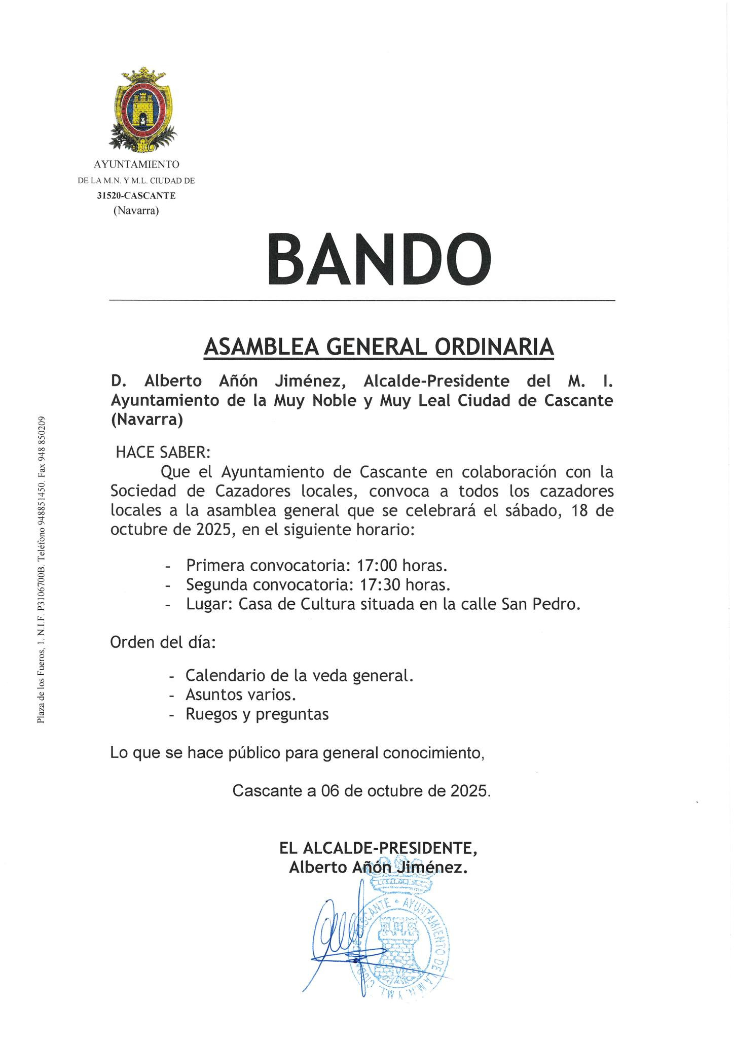 El Ayuntamiento de Cascante en colaboración con la Sociedad de Cazadores Locales, informa que, se autoriza a campear sin arma y en zonas no boscosas,...