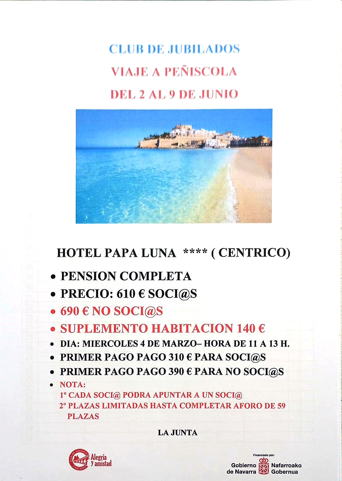 Inscripciones el día 12 de febrero, de 11:00 a 13:00 horas, en las oficinas del Club de Jubilados.