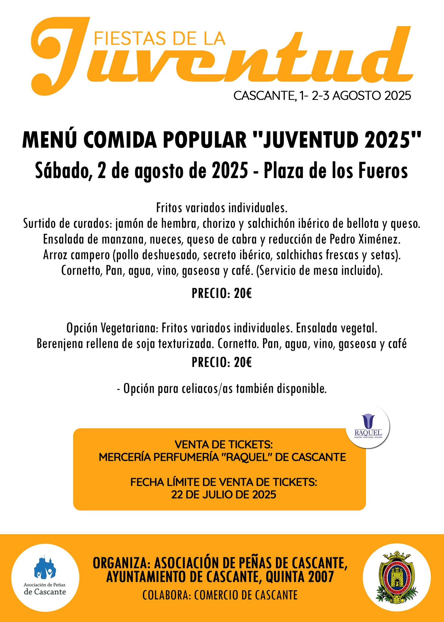 ¡¡Importante!! ¡¡Ampliamos el plazo de venta de tickets para la Comida Popular de "Fiestas de la Juventud 2025"!!