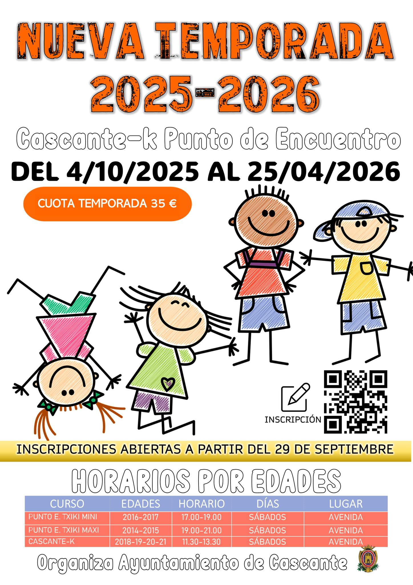NUEVA TEMPORADA 2025-2026 Del 4 de octubre de 2025 al 25 de abril de 2026. Cuota de temporada: 35 horas por usuario/a. Inscripciones: https://forms.gle/eK2Yfzwj4WMc8mEQ7
