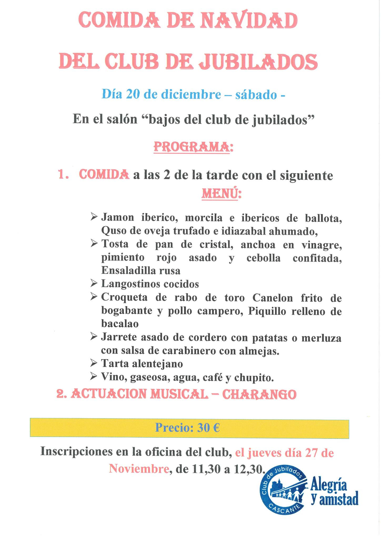 Precio: 30 euros. Inscripciones el jueves, 27 de noviembre, de 11:30 a 12:30 horas en las Oficinas del Club.