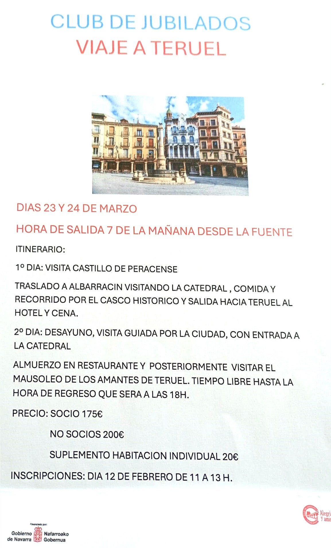 Precio soci@s: 175 euros y no soci@s: 200 euros. Inscripciones el día 12 de febrero, de 11:00 a 13:00 horas, en las oficinas del Club de Jubilados.