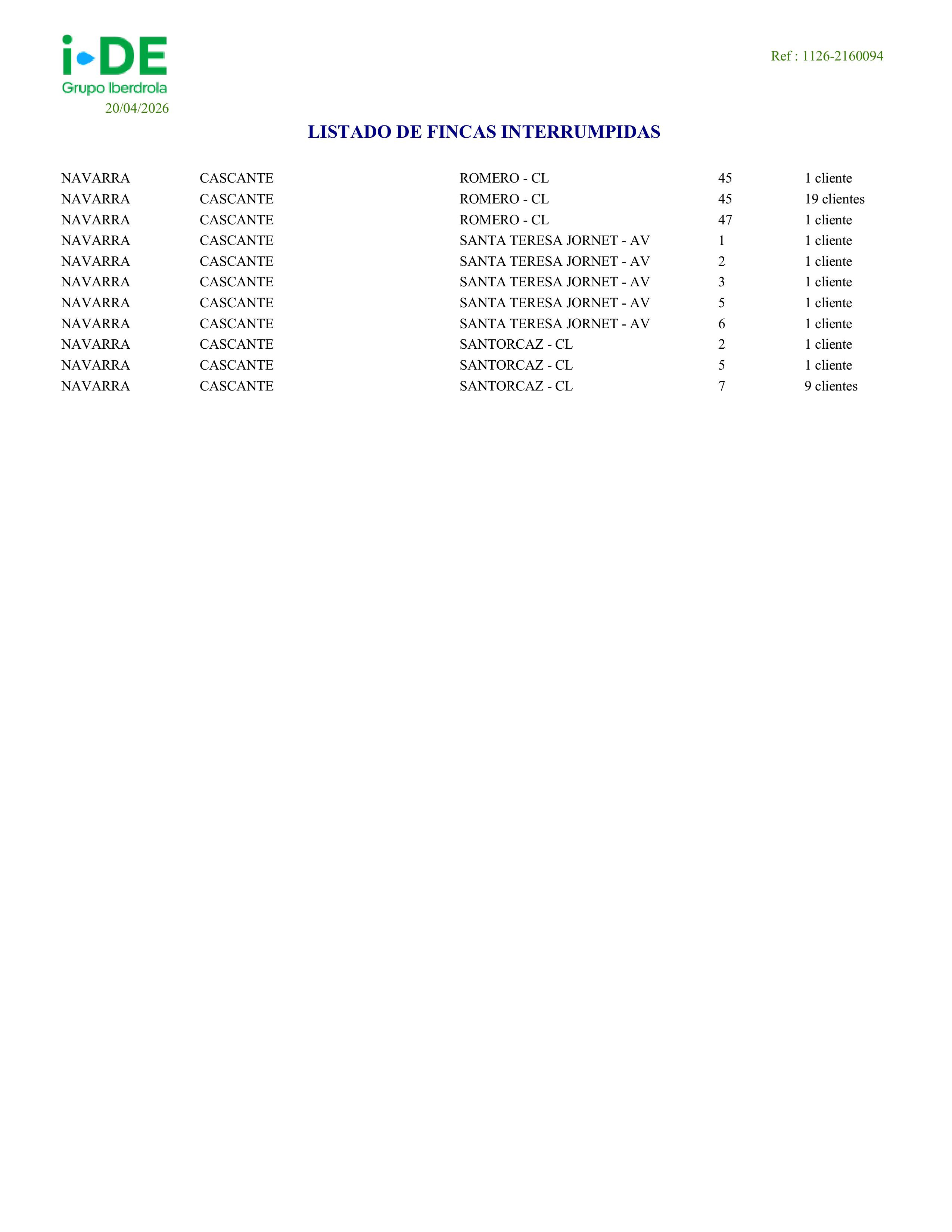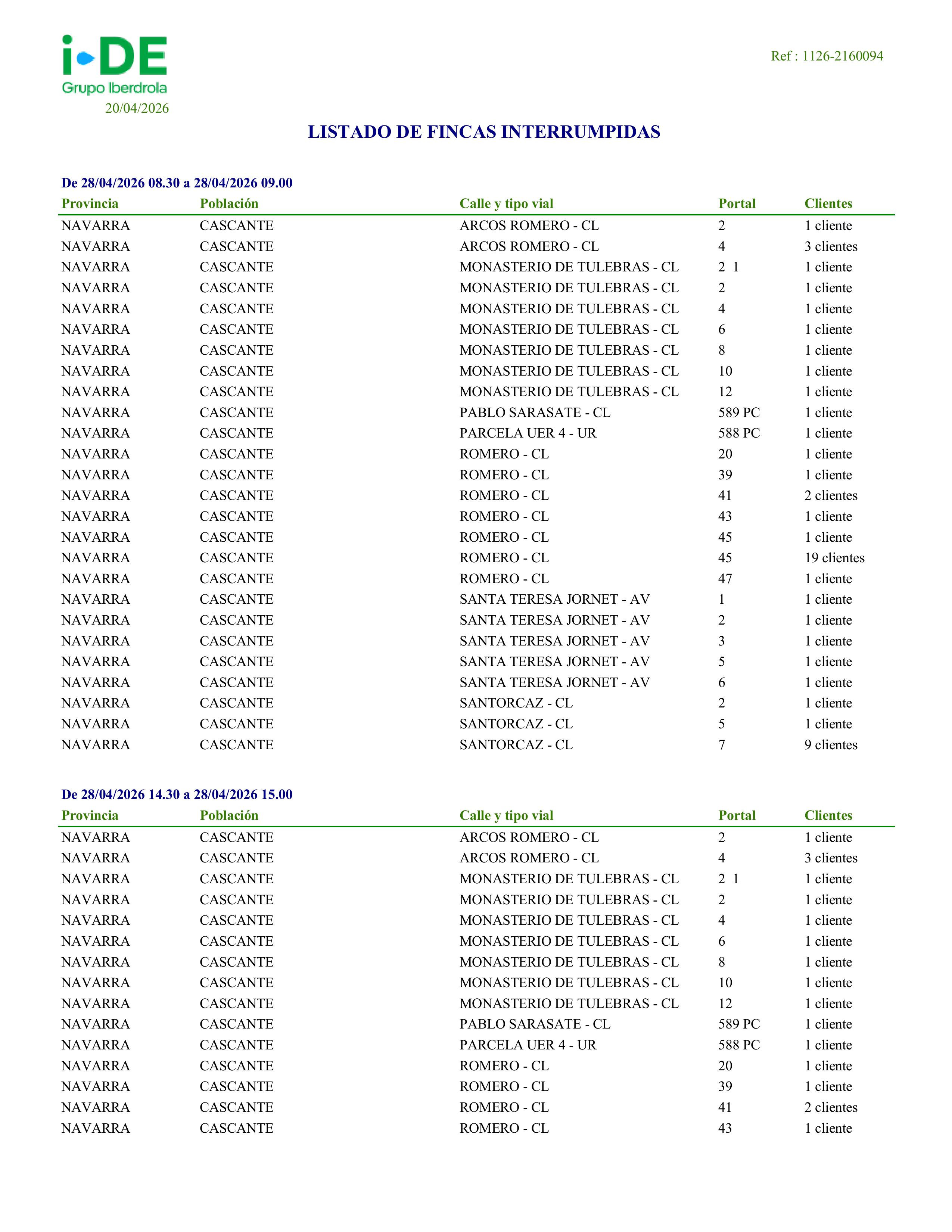 Segunda interrupción del suministro será 28/04/2026 a las 14:30h a 15h (aproximadamente).