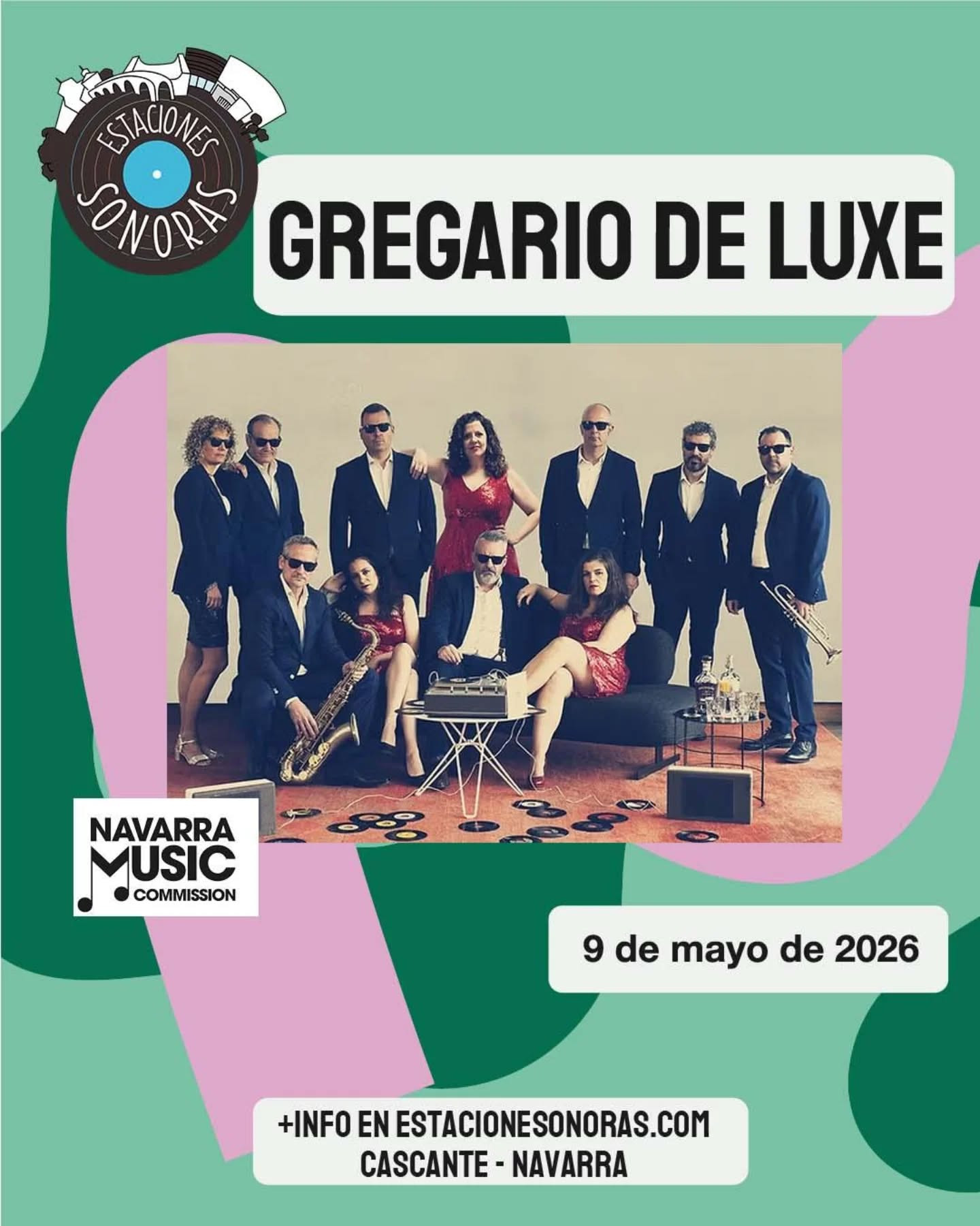 Gregario de Luxe ha sido una de las bandas seleccionadas para participar en Estaciones Sonoras 2026, de la mano de la Navarra Music Commission. Gregario de Luxe es una banda de Pamplona que en 2004 eligió el camino de los sonidos clásicos del R&B y el Soul, con una explosiva puesta en escena y un repertorio hecho para ver la luz: temas originales, clásicos de la música negra de los 1960's, y canciones populares revisadas desde el espíritu del sonido de Memphis, Detroit o Philadelphia de mediados del siglo XX.