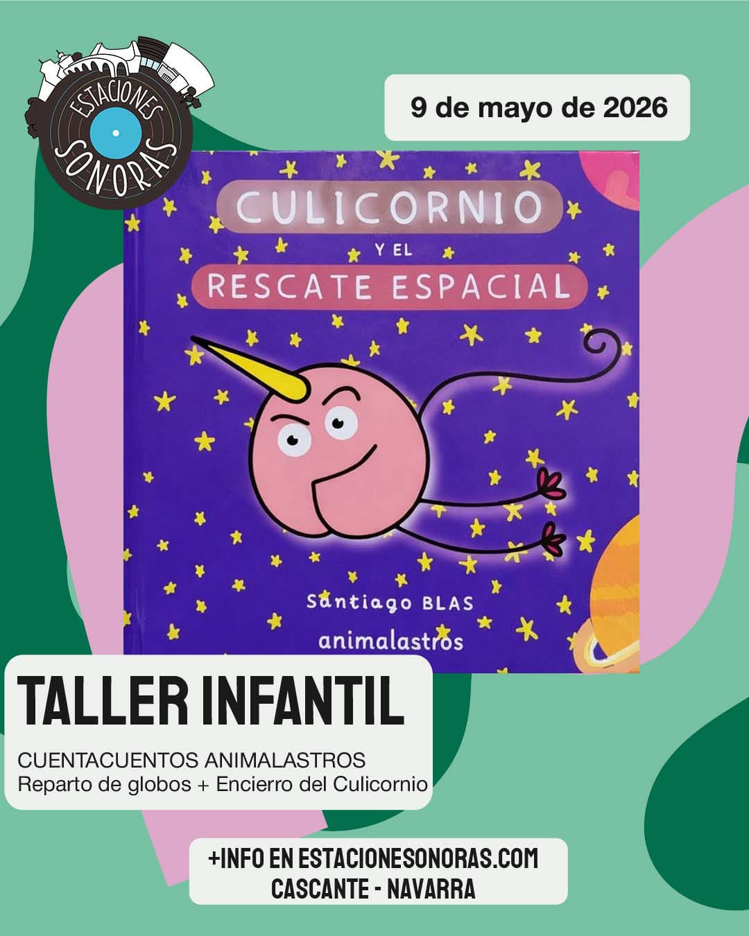 ¡Estaciones para tod@s! Actividad infantil de la mano de "Animalastros" Cuentacuentos con "Animalastros" + Reparto de globos + Encierro del Culicornio. Entrada libre y gratuita (hasta completar aforo).