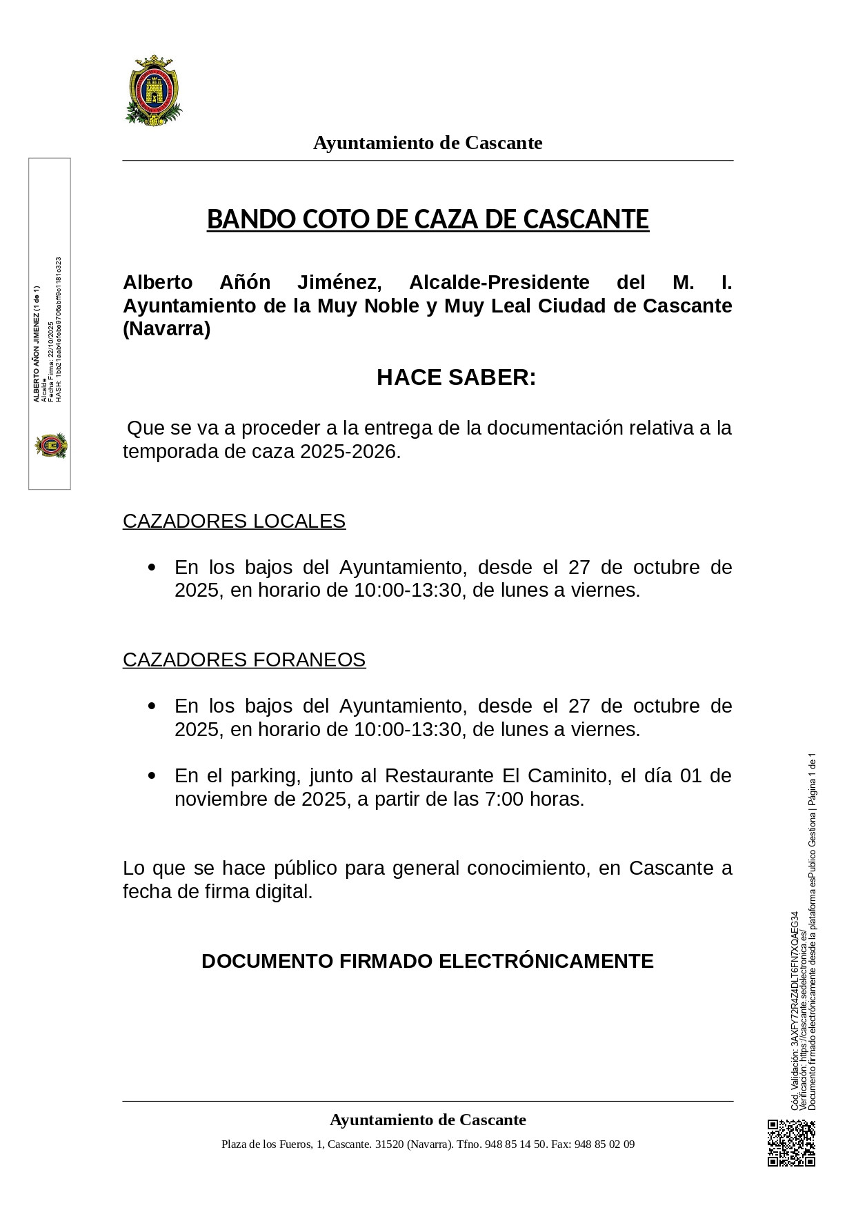 Recogida de la documentación relativa a la temporada de caza 2025-2026.